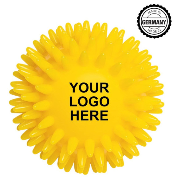 Igelball / Massageball mit Bedruckung (78mm, Gelb), "Made in Germany"