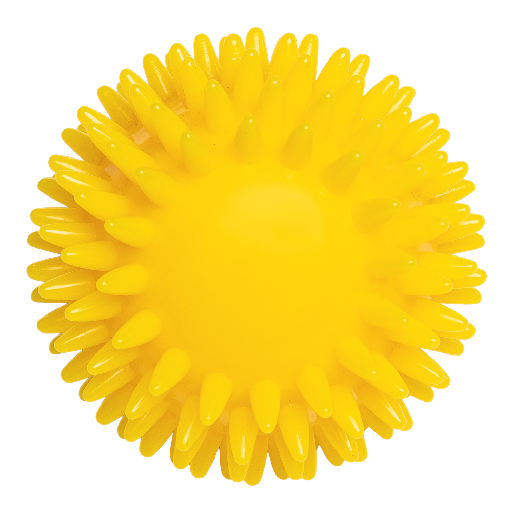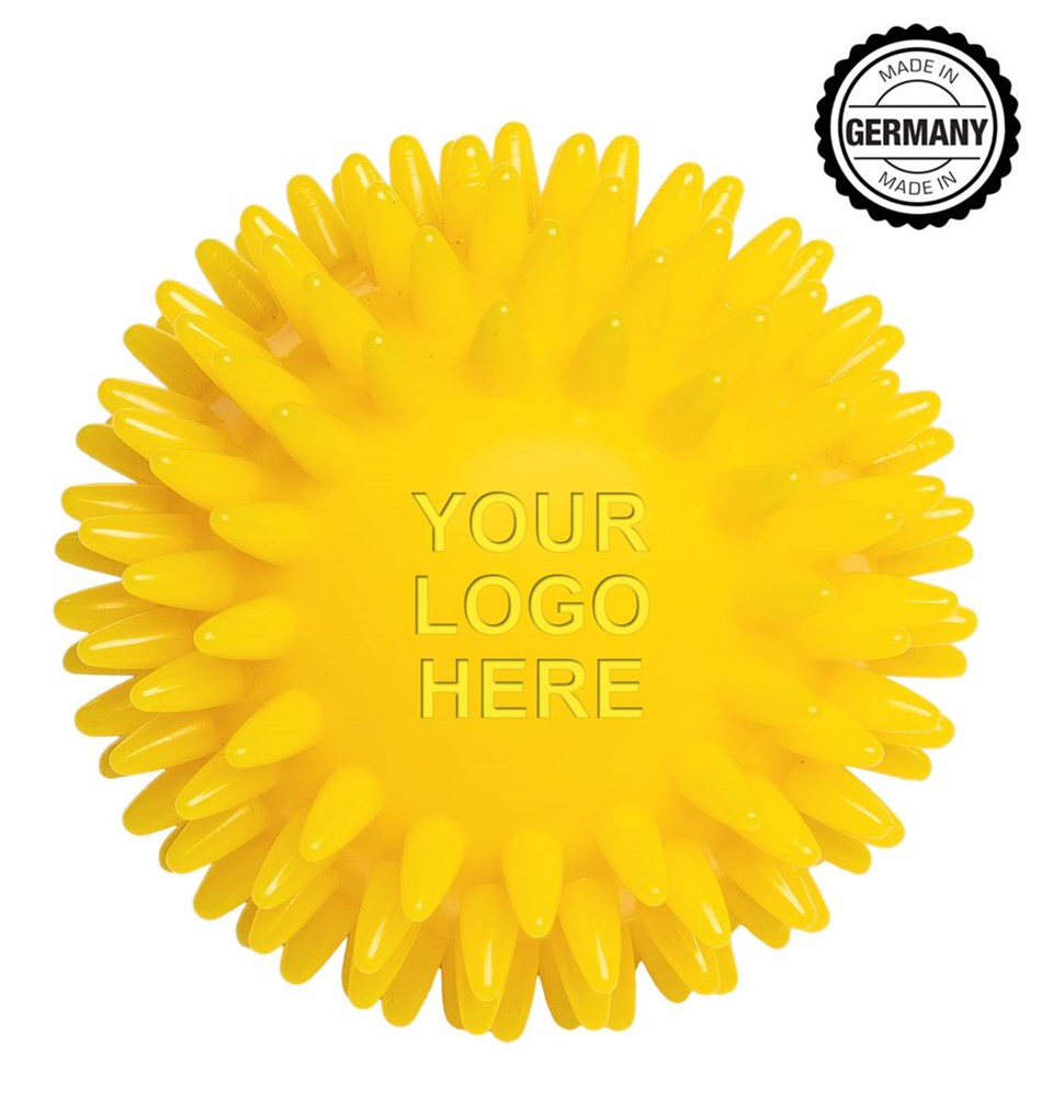 Massageball / Igelball mit runder Prägung (78 mm, Gelb), "Made in Germany"