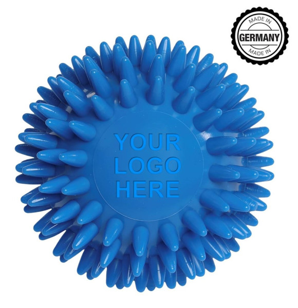 Massageball / Igelball mit runder Prägung (78 mm, Blau), "Made in Germany"