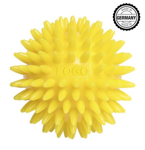 Massageball / Igelball mit rechteckiger Prägung (78mm, Gelb), "Made in Germany"